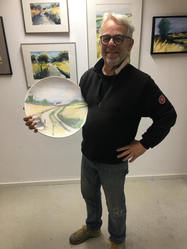 Onderwerpen zoekt en vindt hij meestal in mijn directe omgeving, de natuur van het ‘Groene Hart’, luchten, dorpen, bruggen en sluizen, kortom alles wat het landschap hier vormt.